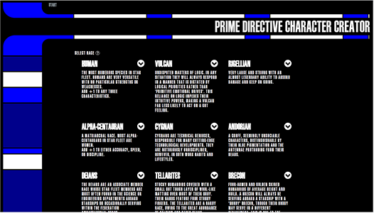 For IM 398 Projects II one of the 4 projects I chose was to make a website for the liscensed Star Trek role playing game Prime Directive. I wanted to showcase the intersection of artistic creativity with my web programming skills by making this prototype.